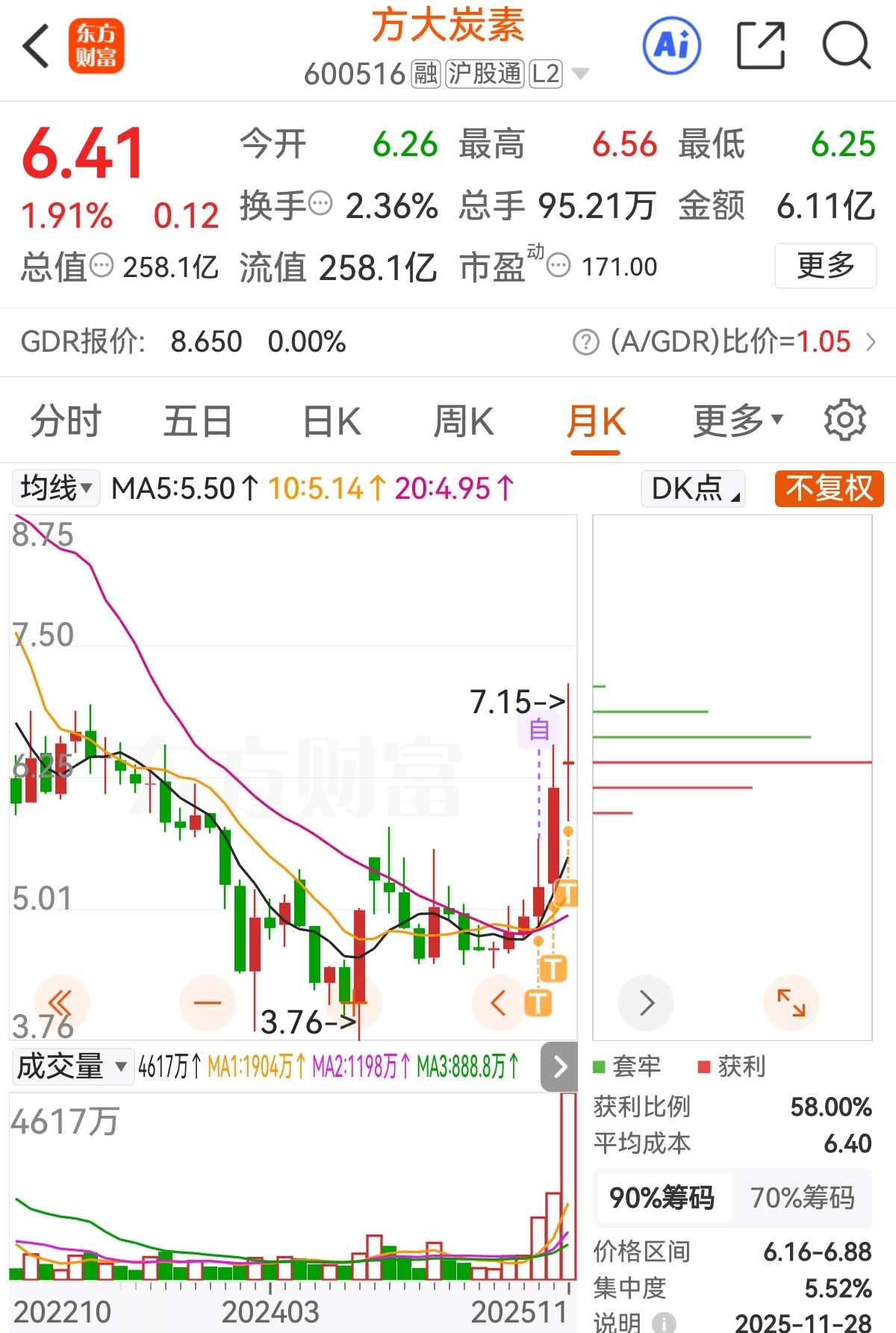 $方大炭素(SH600516)$ 总市值258亿到今天224亿,跑了34亿