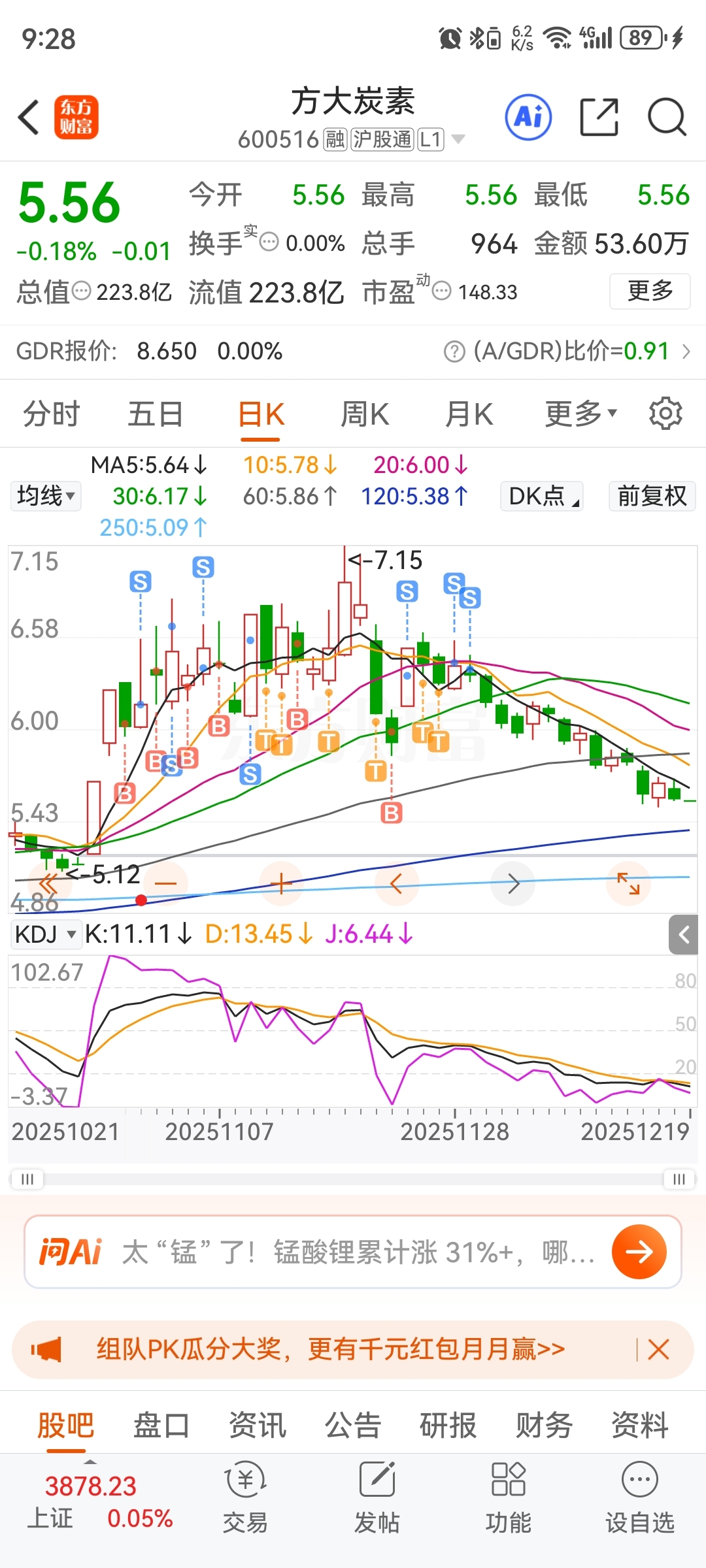 $方大炭素(SH600516)$ 回来回来看看你们