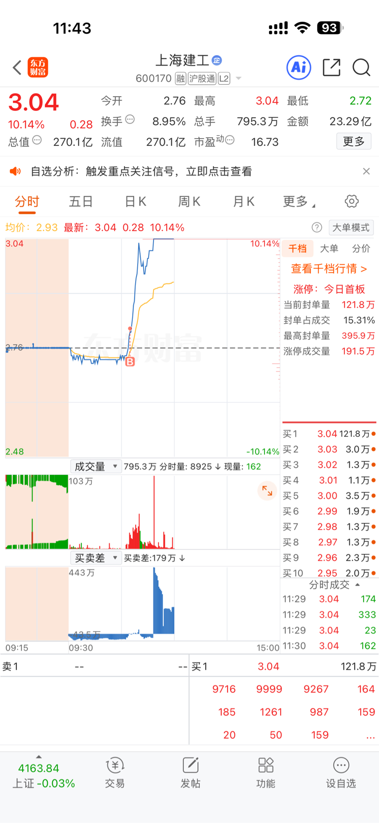 果然,炒股不能有执念啊,换了上海建工,这不就吃上肉了。你慢慢打压股价,慢慢洗盘,
