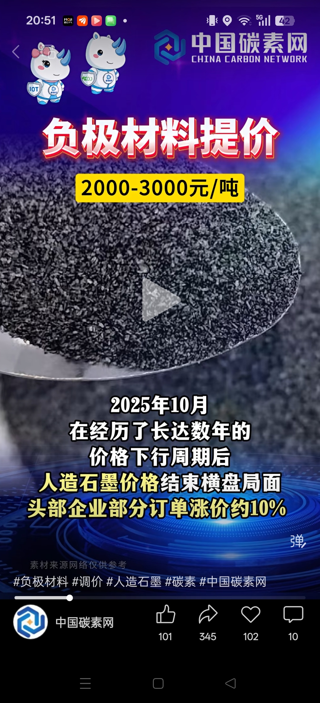 $方大炭素(SH600516)$ 已经涨价10%了。