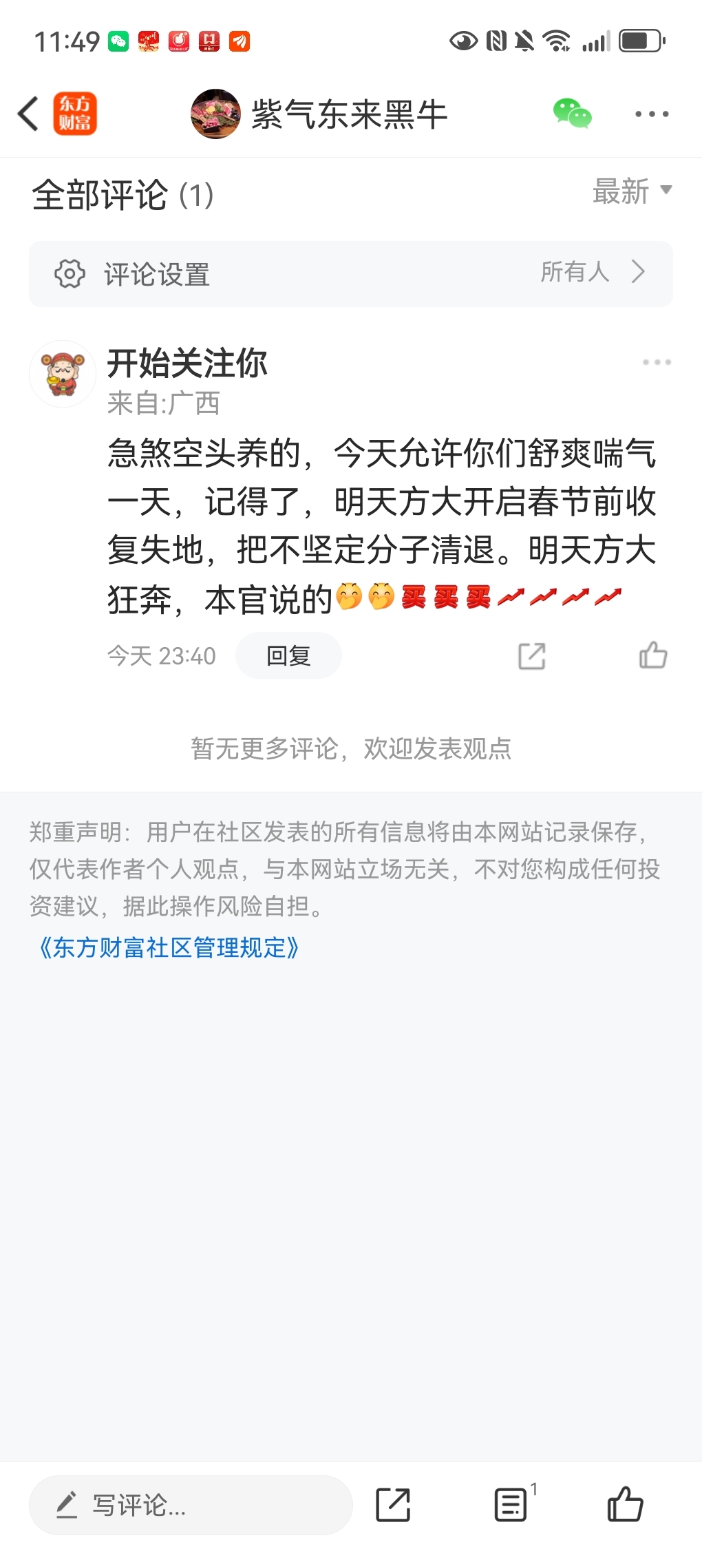 温馨提示: 1.根据《证券法》规定,禁止编造、传播虚假信息或者误导性信息,扰乱证券市场;2.用户在本社区发表的所有资料、言论等仅代表个人观点,与本网站立场无关,不对您构成任何投资建议。用户应基于自己的独立判断,自行决定证券投资并承担相应风险。《东方财富社区管理规定》