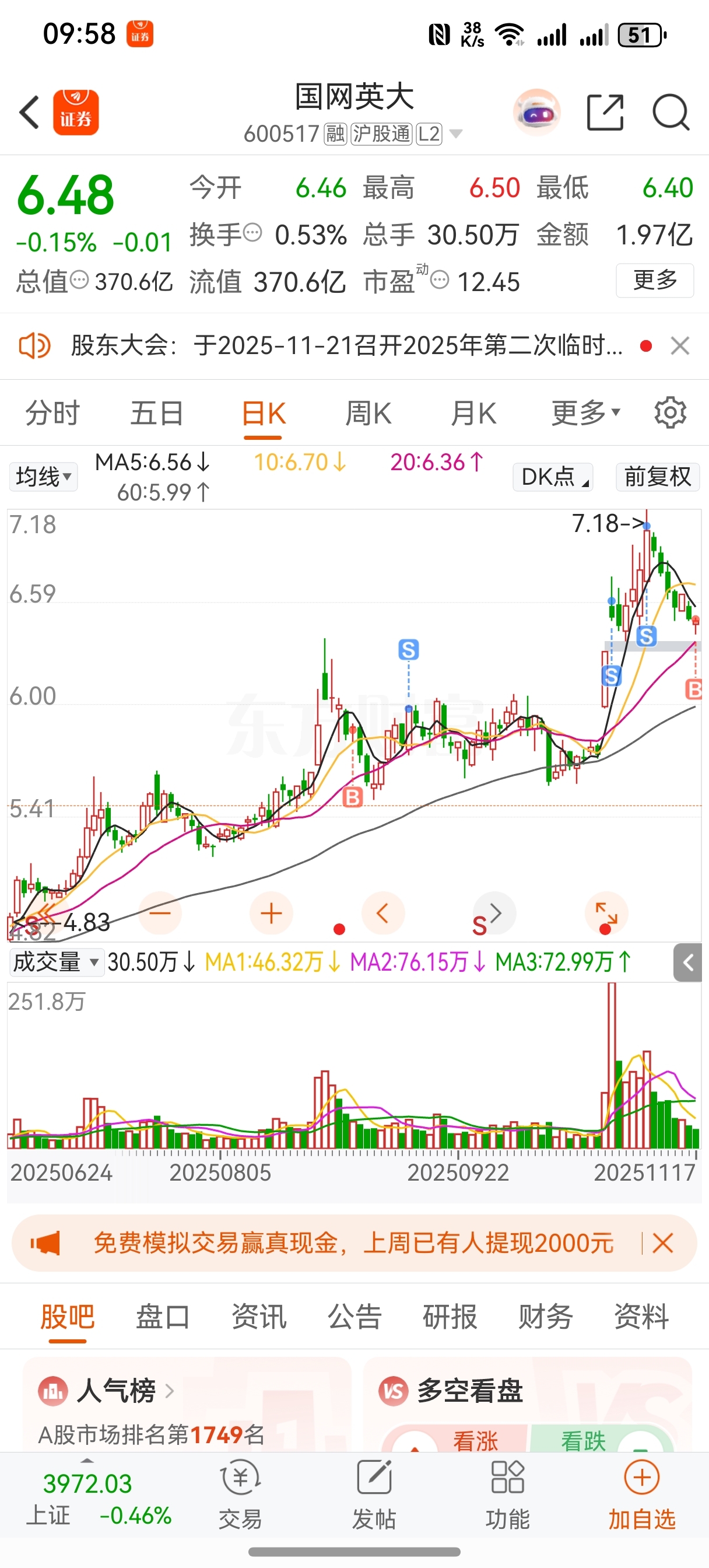 $国网英大(SH600517)$ 唉!实在没忍住,加了一手