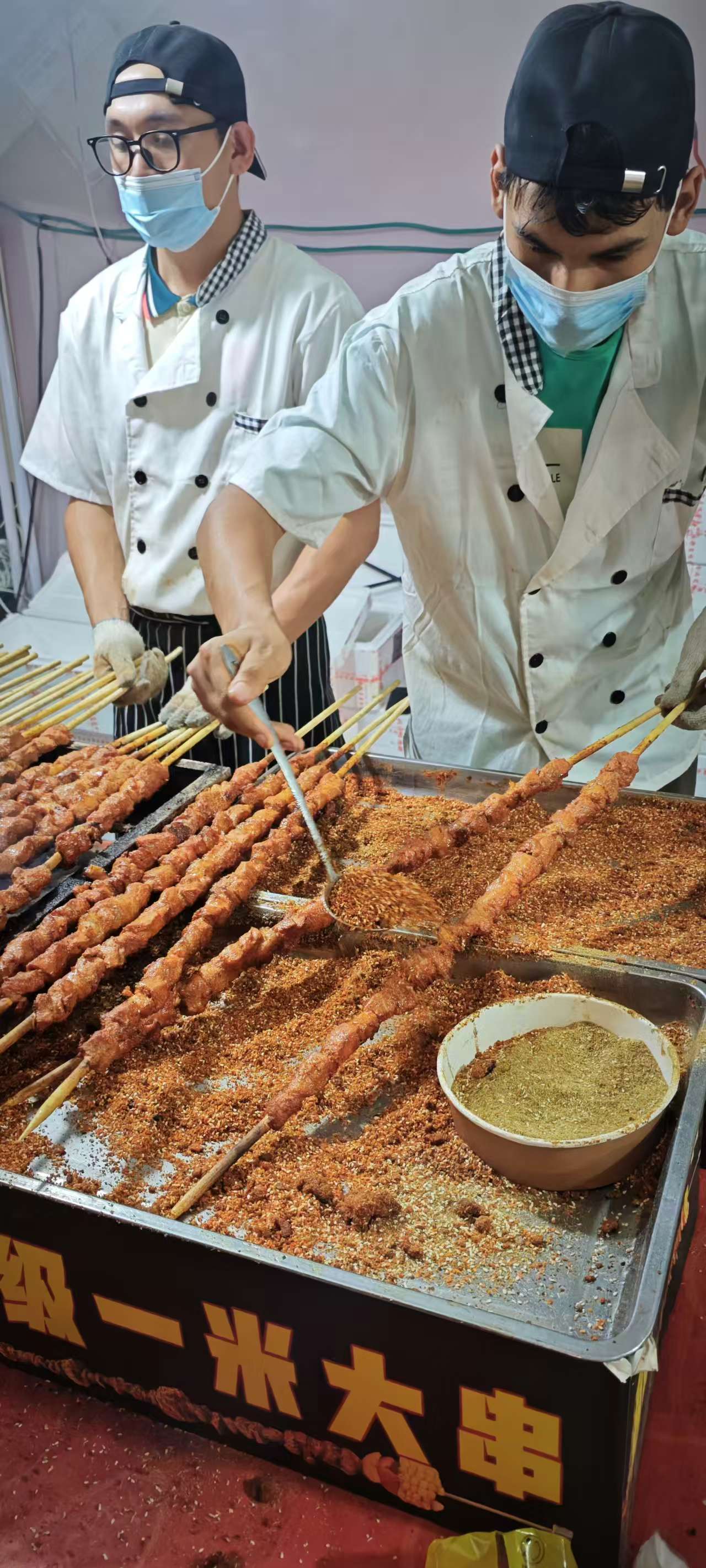 节前忍的,又忍对了!!想成本低就得忍!你着急着买了几串烤串吃了,走没多远拐个弯。发现这边有一米长一根大烤串,更实惠啊。。。