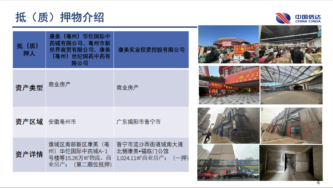 在百昌拍卖中提及资产包包含亳州商业房产、普宁商铺及部分已变现资产(变现5474.04万元),但剩余资产处置难度较大(如康美药业股票价值波动)。