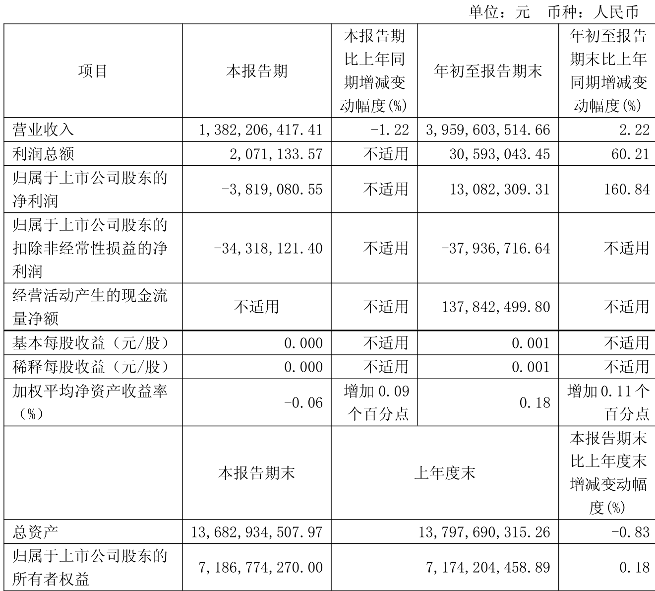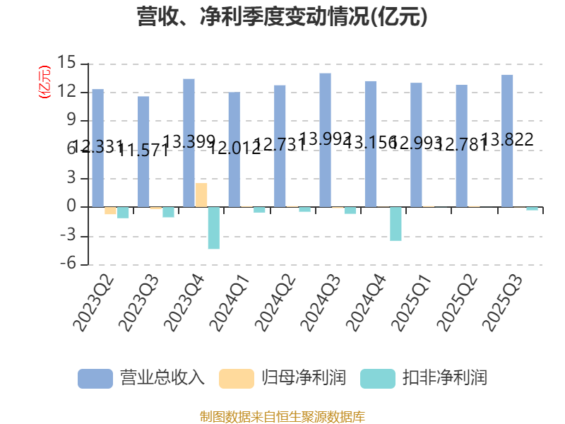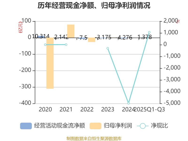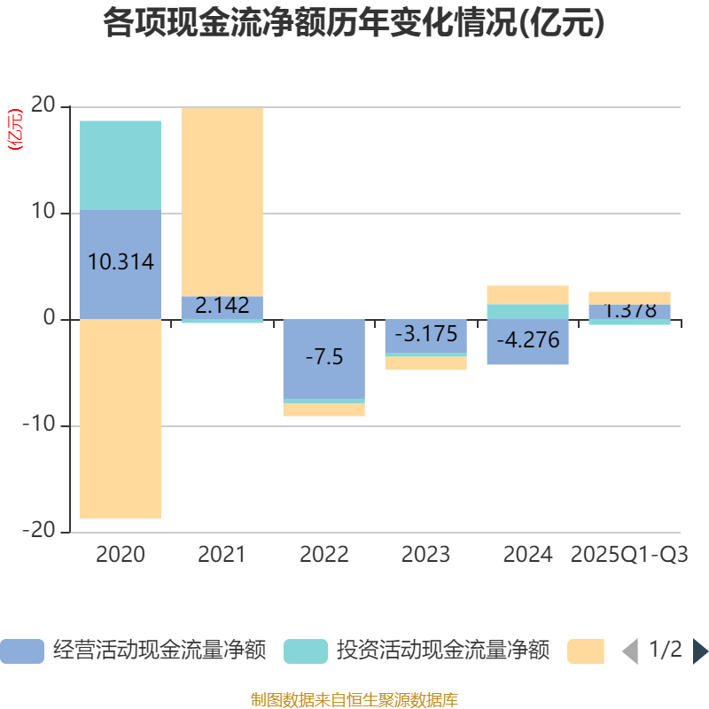 2025年前三季度,公司经营活动现金流净额为1.38亿元,同比增加4.88亿元;筹资活动现金流净额1.18亿元,同比增加1.54亿元;投资活动现金流净额-5403.63万元,上年同期为2579.92万元。