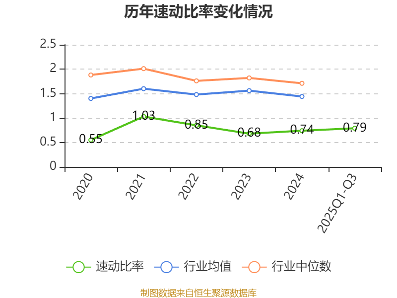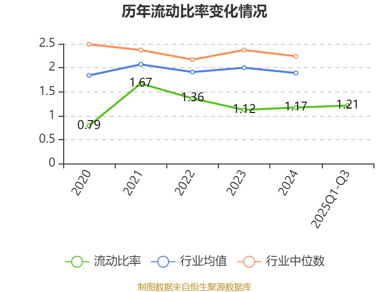 2025年前三季度,公司流动比率为1.21,速动比率为0.79。