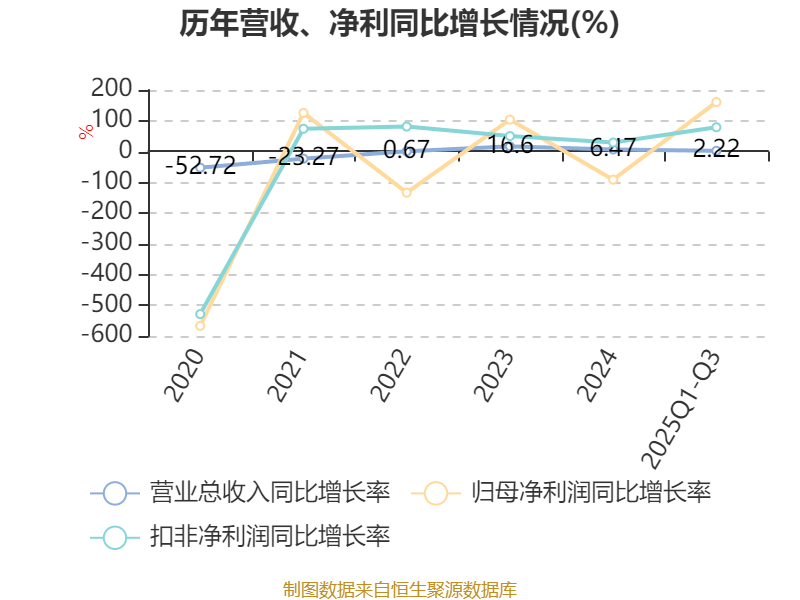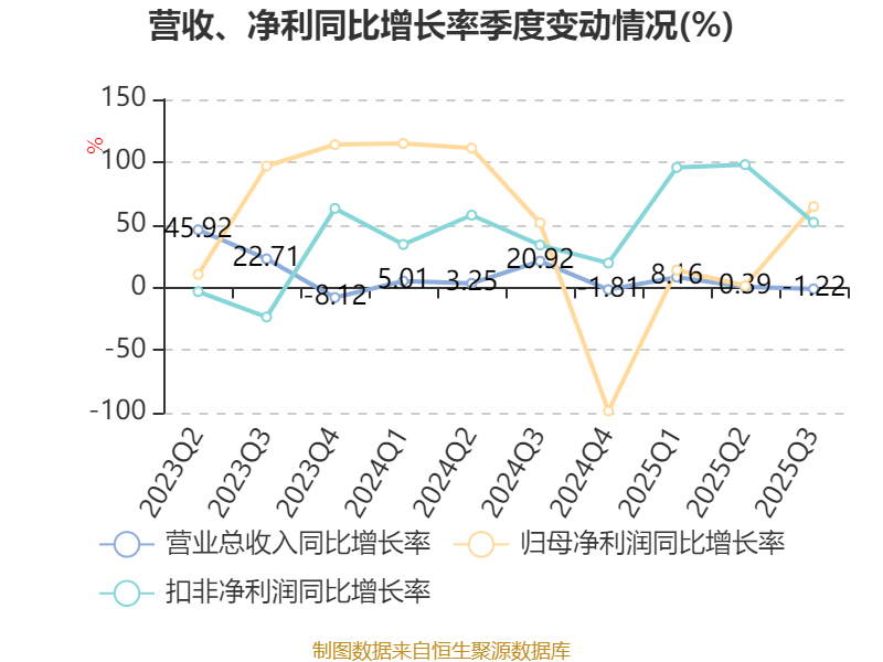 资产重大变化方面,截至2025年三季度末,公司货币资金较上年末增加20.74%,占公司总资产比重上升1.54个百分点;应收票据及应收账款较上年末增加6.01%,占公司总资产比重上升1.19个百分点;固定资产较上年末减少4.34%,占公司总资产比重下降0.82个百分点;预付款项较上年末减少50.06%,占公司总资产比重下降0.63个百分点。