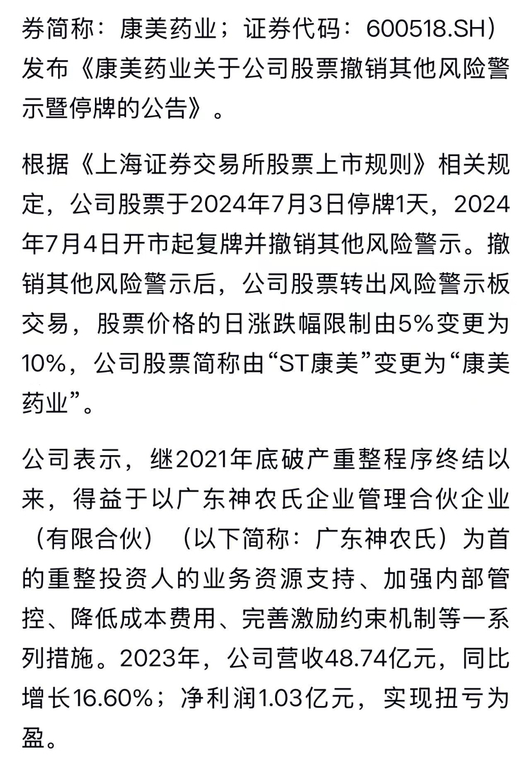 特大喜讯!康美药业继停牌昨今两天后,明日复牌