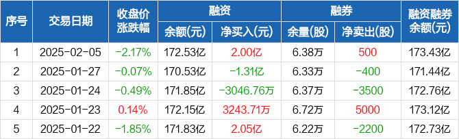 贵州茅台:融资净买入2亿元,两市排名第七(02-05)