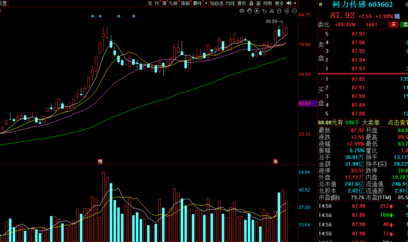 $柯力传感(SH603662)$柯力传感603662,人形机器人龙头股之一,该股是为数不多的机器人绩优股。虽然它年后涨幅不算很大,是因为上年底它的涨幅太大,当时的第一龙头股,股价又高,所以今年主力都做其它低位的人形机器人概念股。现在指数已经爆涨了,柯力才姗姗来迟,到了突破前高的颈线位,昨天已经完全无视大盘的下跌,低开高走涨2.99%收盘,而且没有下影线,这与大盘的长下影线形成强弱的对比。