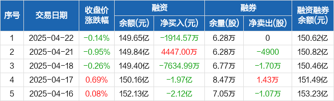 贵州茅台:融资净偿还1914.57万元,融资余额149.65亿元(04-22)