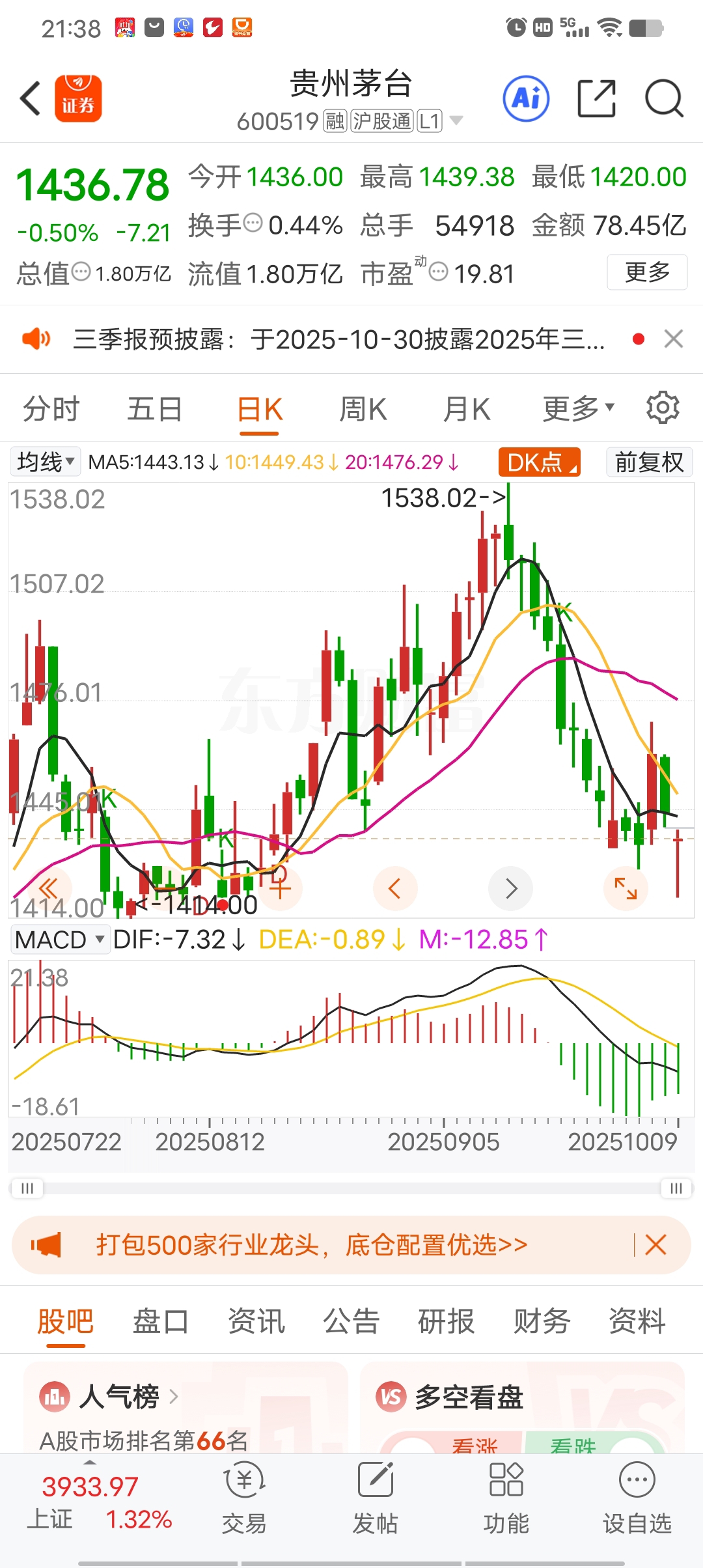 $贵州茅台(SH600519)$ 尾盘收十字星多头占优明天要涨的节奏