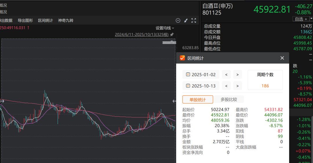 从市场表现看,在今年以来的结构性行情中,白酒板块整体表现欠佳。Choice资讯显示,截至10月13日,申万白酒指数年内下跌8.57%。