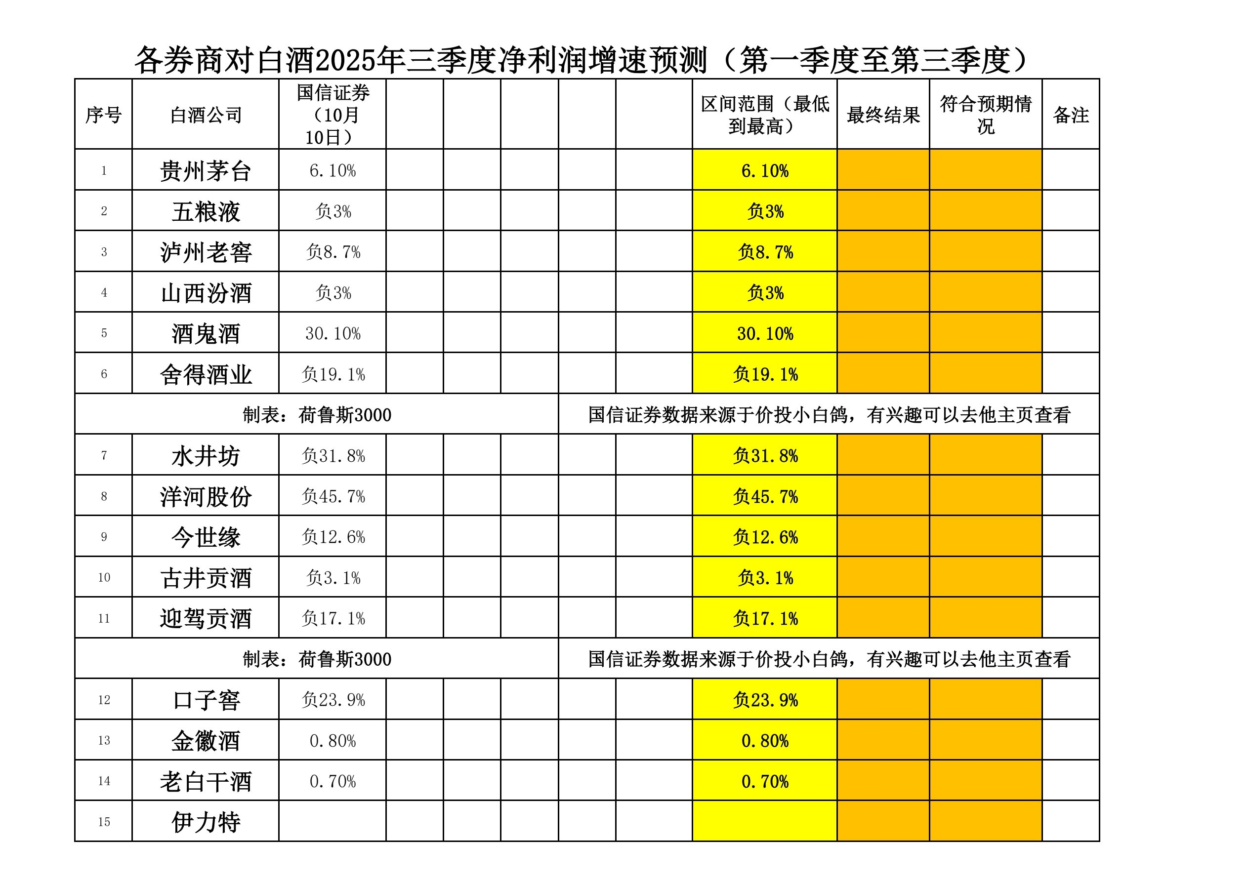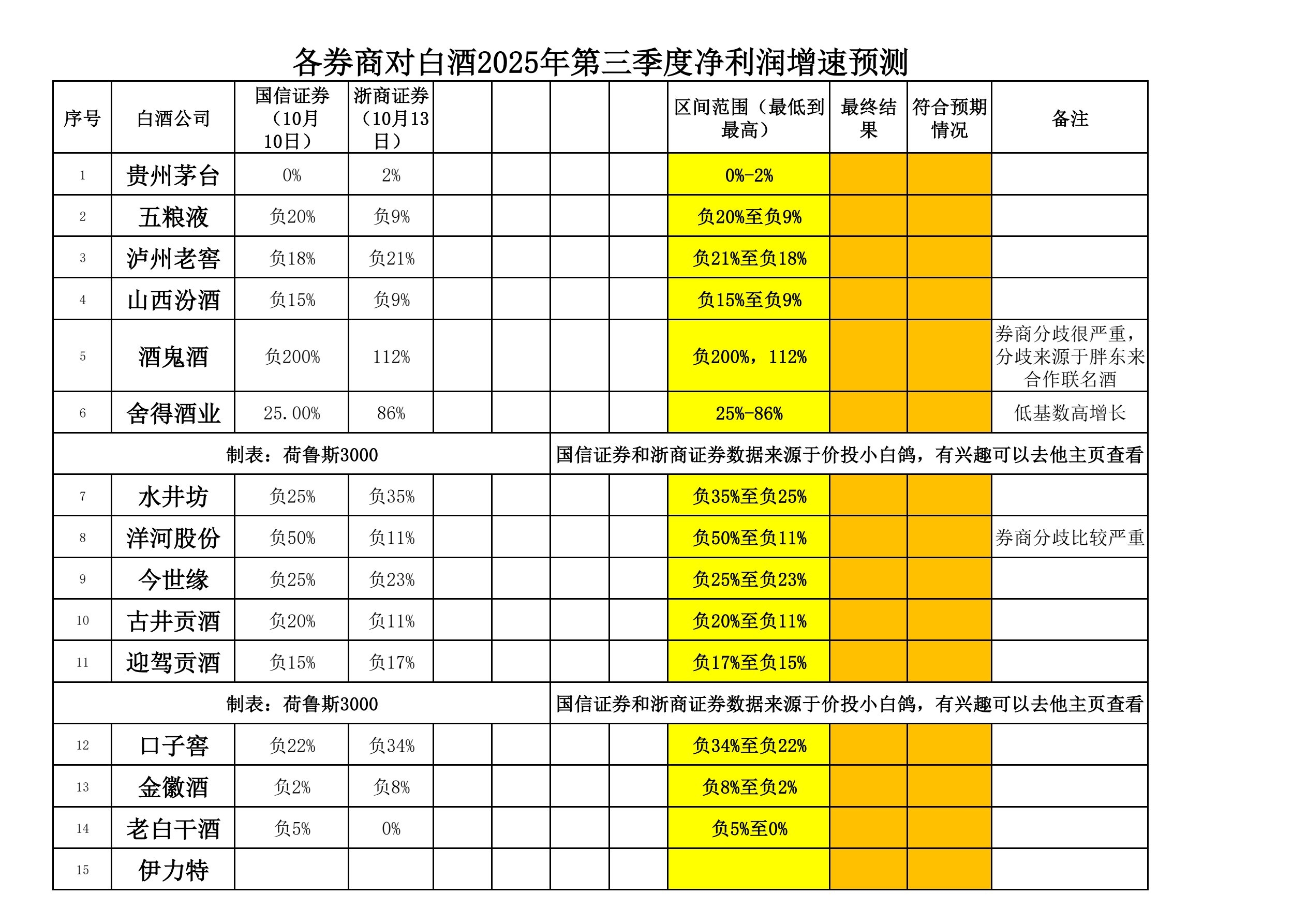 各券商对白酒三季度业绩预测(本帖主页置顶,持续更新中)
