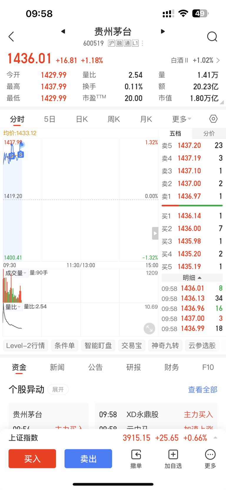 $贵州茅台(SH600519)$ 今天要卖光你,谢谢爸爸拉伸
