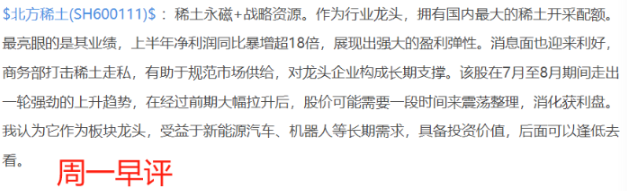 $北方稀土(SH600111)$:稀土永磁+新能源汽车+风电+人形机器人+军工这家公司是全球轻稀土领域的龙头,近期业绩爆发式增长,上半年净利润同比增幅超过1900%,主要受益于稀土价格上升和新能源需求拉动。本周一股价强势涨停,上个交易日盘中创出阶段性新高61.69,虽然股价翻绿回落,K线形态呈现多头排列,均线系统发散向上,量价配合较好,看起来不像单纯洗盘,更像是增量资金进场吸筹推动的加速阶段。稀土供需格局偏紧的基调没有改变,美国对镨钕的保底价为价格托底,加上新能源和机器人领域的需求扩张,股价有望继续向上。