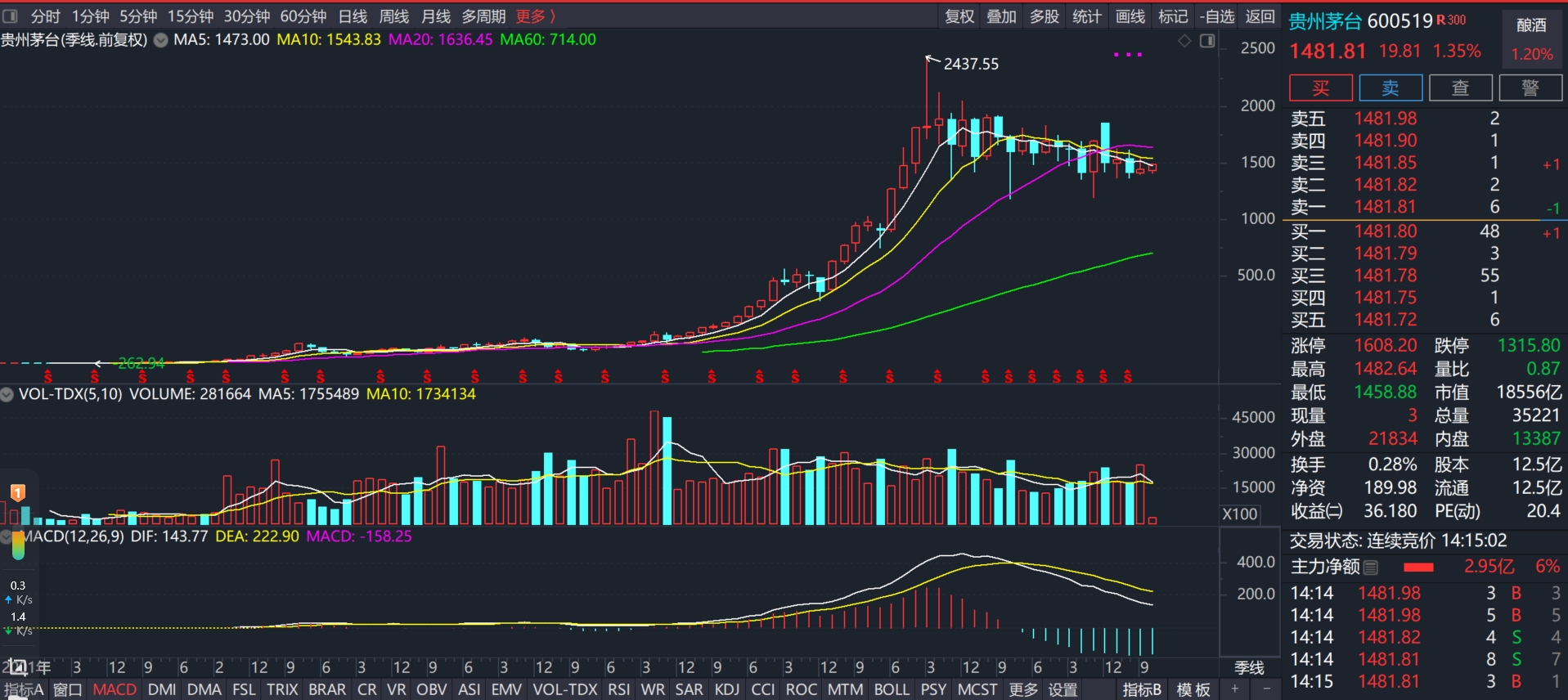 段永平增持茅台,应当是通过沪港通买入,而茅台的季线涨跌基本上是与沪港通增减幅度相一致的