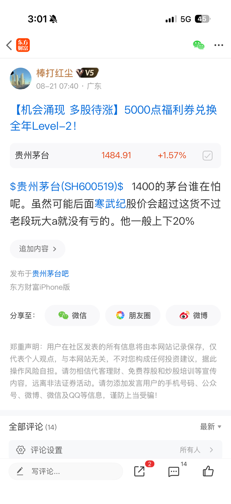 温馨提示: 1.根据《证券法》规定,禁止编造、传播虚假信息或者误导性信息,扰乱证券市场;2.用户在本社区发表的所有资料、言论等仅代表个人观点,与本网站立场无关,不对您构成任何投资建议。用户应基于自己的独立判断,自行决定证券投资并承担相应风险。《东方财富社区管理规定》