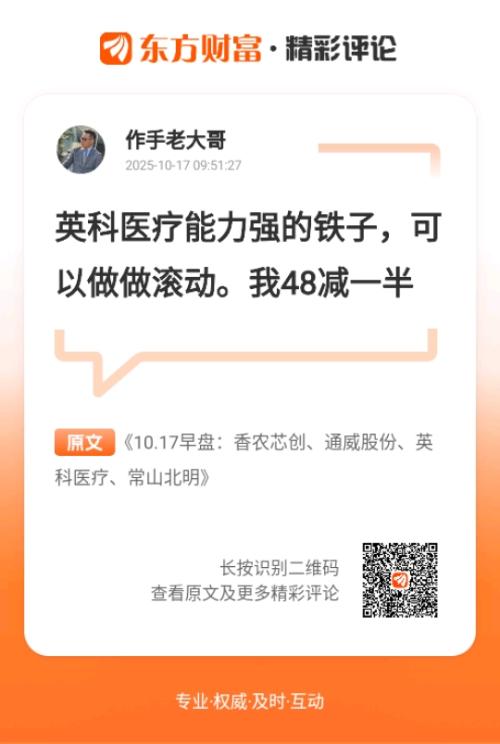 //@作手老大哥 :英科医疗能力强的铁子,可以做做滚动。我48减一半 $贵州茅台(SH600519)$$深科技(SZ000021)$$东方财富(SZ300059)$