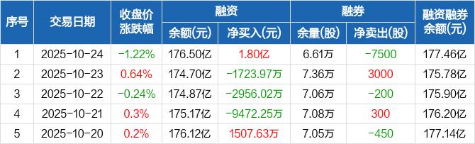 贵州茅台:融资净买入1.8亿元,融资余额176.5亿元(10-24)