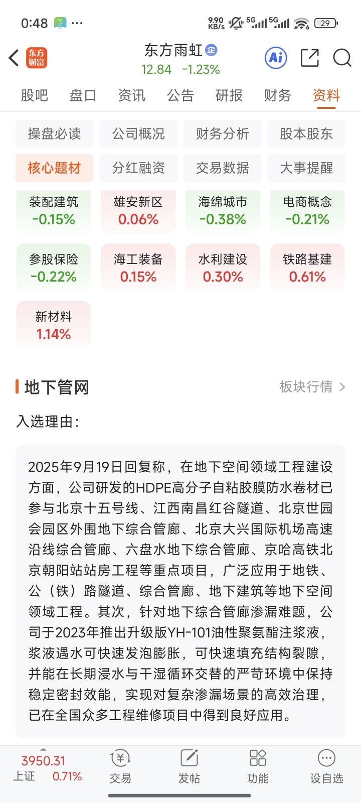 $贵州茅台(SH600519)$ $万 科A(SZ000002)$ $东方雨虹(SZ002271)$ 5万亿地下管网新增投资逐步发酵,继续看好管道和防水龙头,雅下水电站10年投资1.2万亿,天路都涨了十个板,电建这种大盘股也是哐哐涨。这次地下管网5年投资5万亿,按每年体量相当于雅下的8倍多!