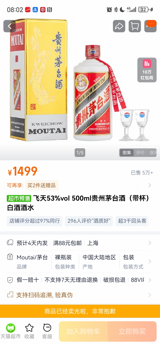 为啥天猫超市1499的飞天茅台一秒就没了,我都抢不到