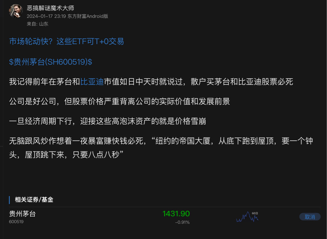 郑重声明:用户在财富号/股吧/博客等社区发表的所有信息(包括但不限于文字、视频、音频、数据及图表)仅代表个人观点,与本网站立场无关,不对您构成任何投资建议,据此操作风险自担。请勿相信代客理财、免费荐股和炒股培训等宣传内容,远离非法证券活动。请勿添加发言用户的手机号码、公众号、微博、微信及QQ等信息,谨防上当受骗!