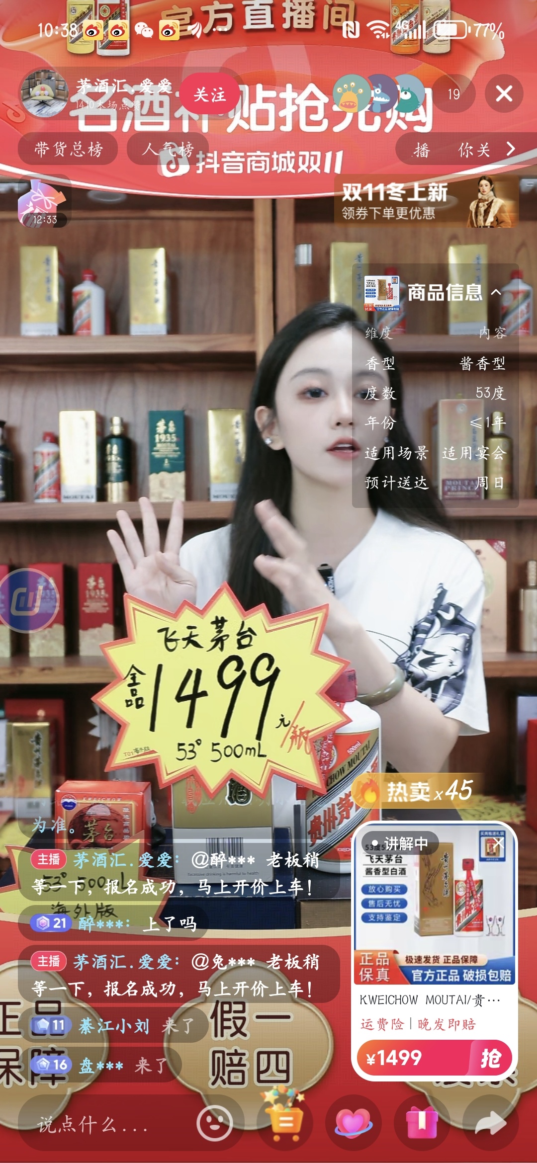 $贵州茅台(SH600519)$ 哪里是1700元,直播卖飞天茅台1499元,要多少1600我卖点给你们