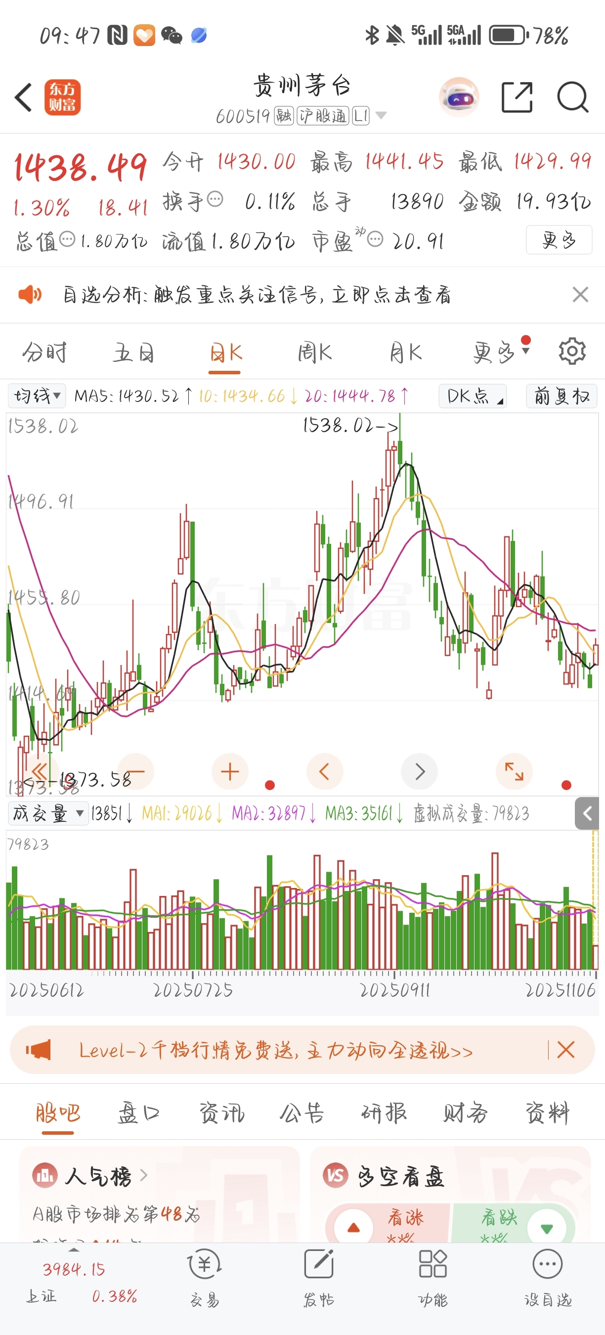 (ps:纯个人运气,不代表建议哈,股市这东西主打一个心跳)$贵州茅台(SH600519)$