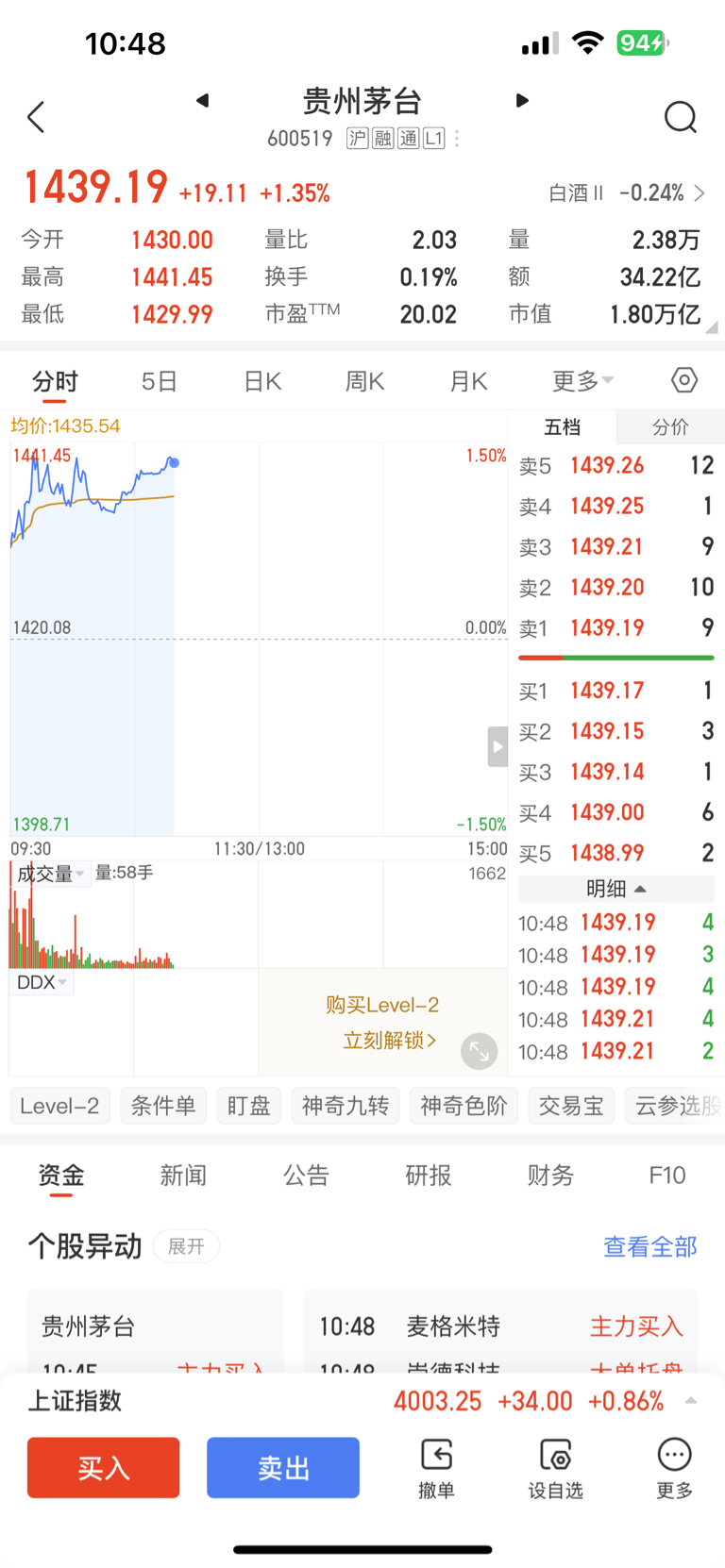 $贵州茅台(SH600519)$ 每次买茅台都能获得意外的惊喜,直觉很不错 1450做个T