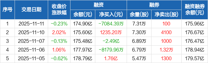 贵州茅台:融资净偿还7084.39万元,融资余额174.9亿元(11-11)