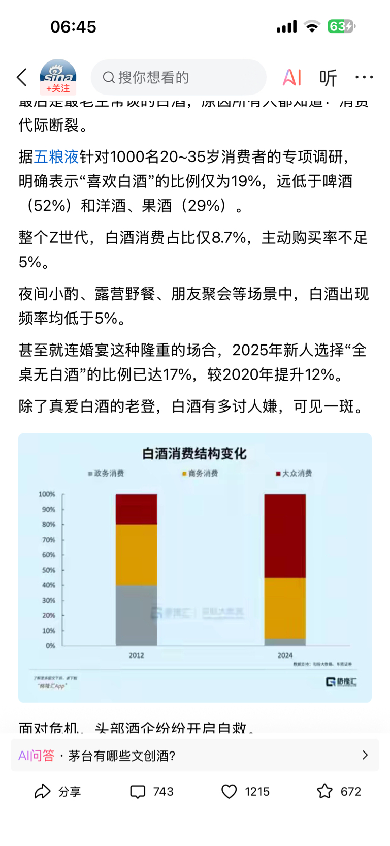 $贵州茅台(SH600519)$ 垂死挣扎的白酒