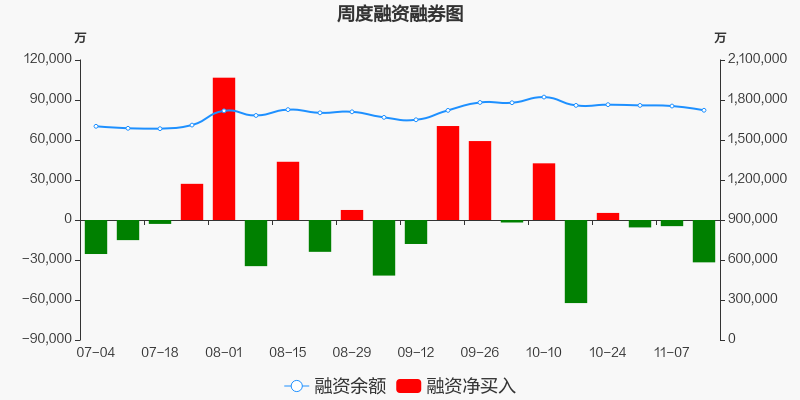 贵州茅台本周(2025/11/10-2025/11/14)累计涨幅达1.62%,截至11月14日最新股价报收1456.60元。从增量上来看,11月10日至11月14日融资买入交易规模20.61亿元,融资偿还规模23.78亿元,期内融资净偿还3.18亿元。从存量上来看,截止11月16日,贵州茅台融资融券余额173.38亿元,其中融资余额规模172.3亿元,融券余额规模1.07亿元。