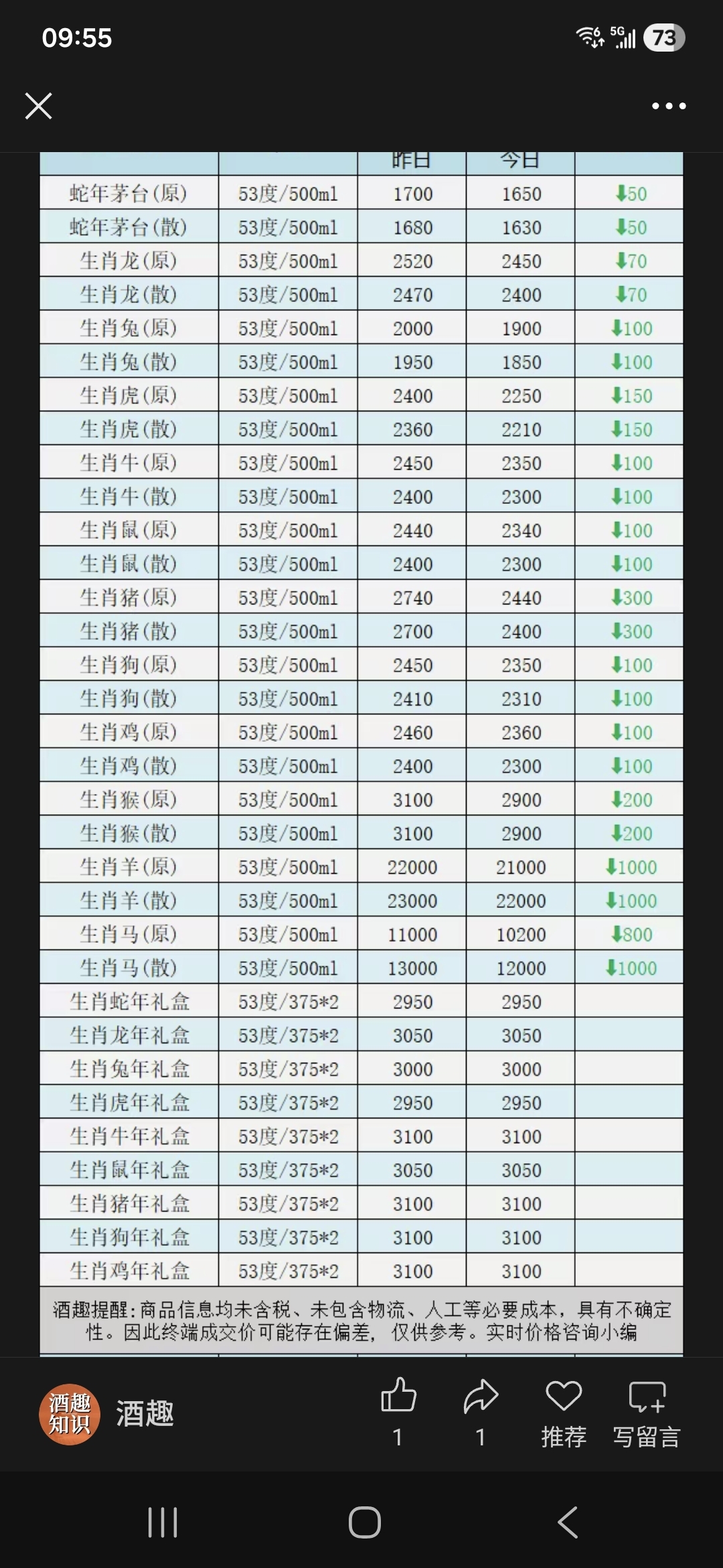 $贵州茅台(SH600519)$ 今天茅台酒行情