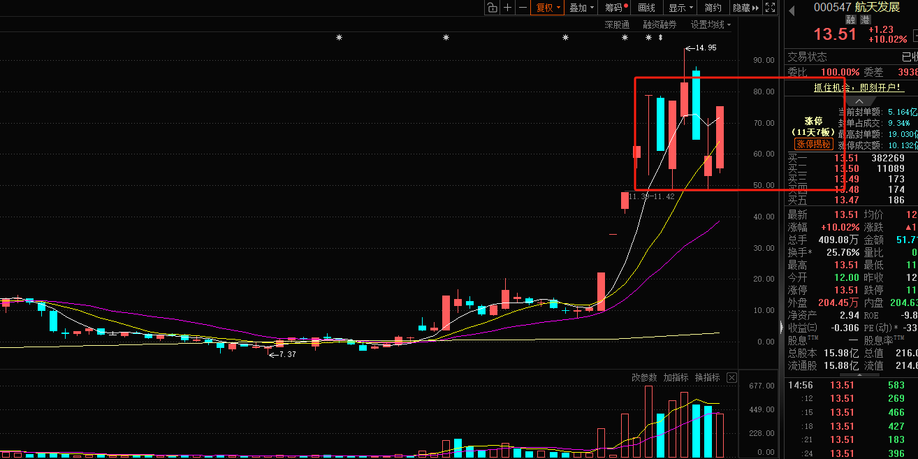 航天发展000547:商业航天概念,这里的预期差已经出现了,但是也不排除持续性会好过其他板块,所以这里就看今天能够上板了,尤其上午,否则冲高无力就要撤了。