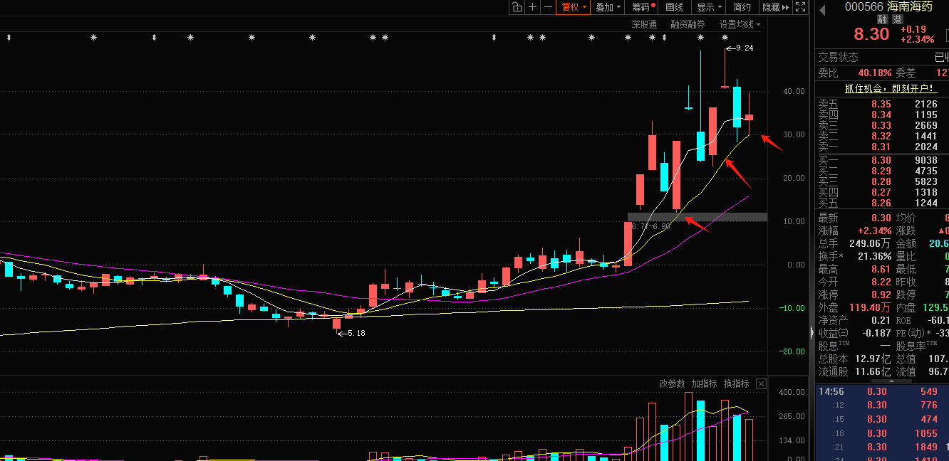 海南海药000566:流感概念,周五的异动是来源于海南板块的,所以今天如果上影线不修复的话可以选择落袋。上板则留