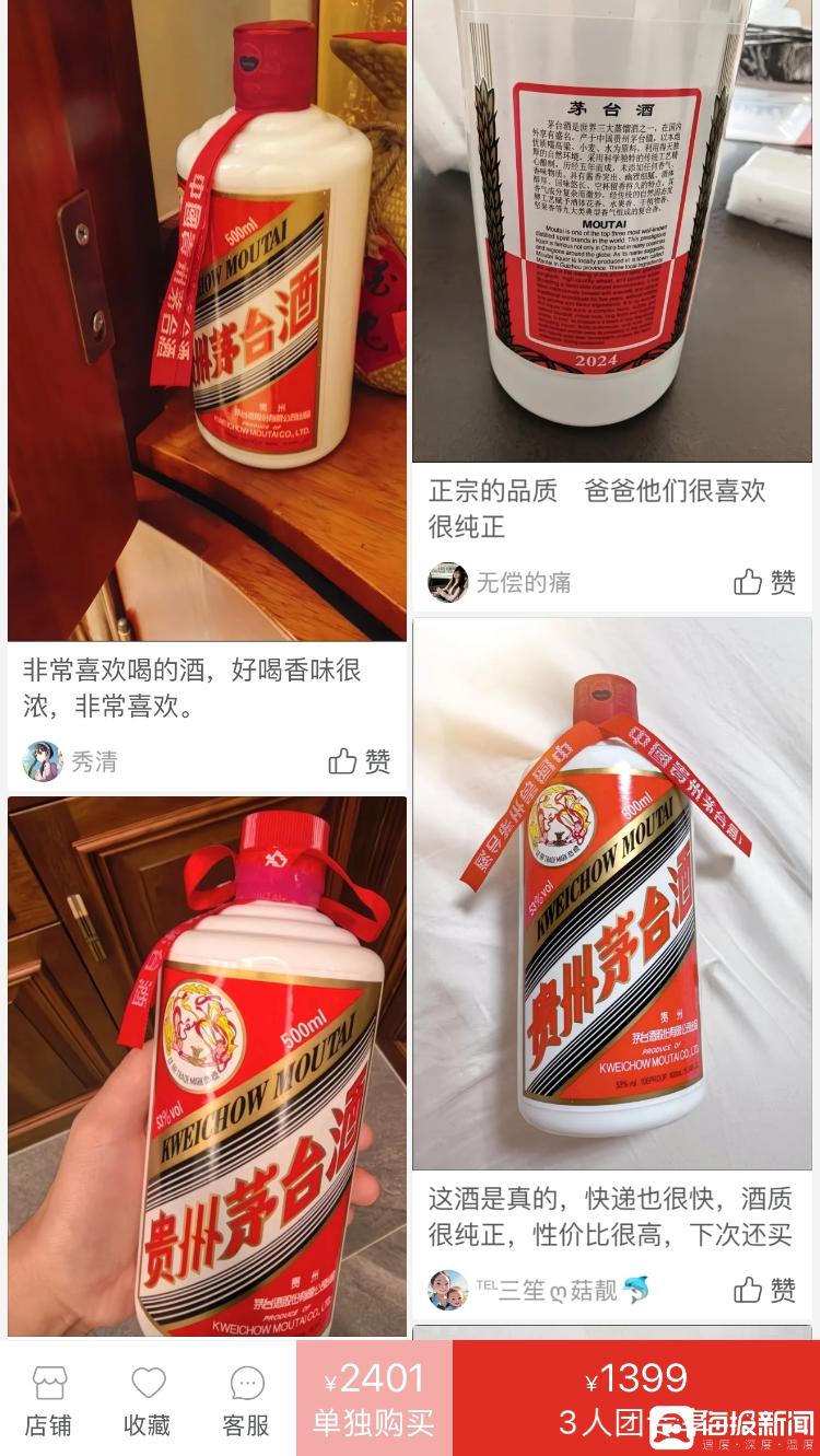 有不少消费者在拼多多1399元/瓶的低价拼团链接中晒出“酒真”的评论。