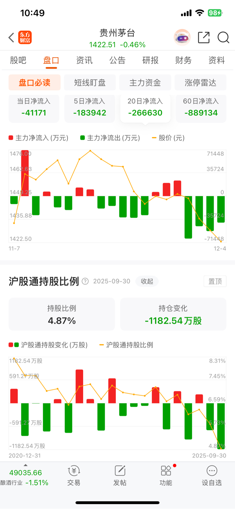 $贵州茅台(SH600519)$ 资金流入都涨不了,只能跌了,还在里面的是基金?