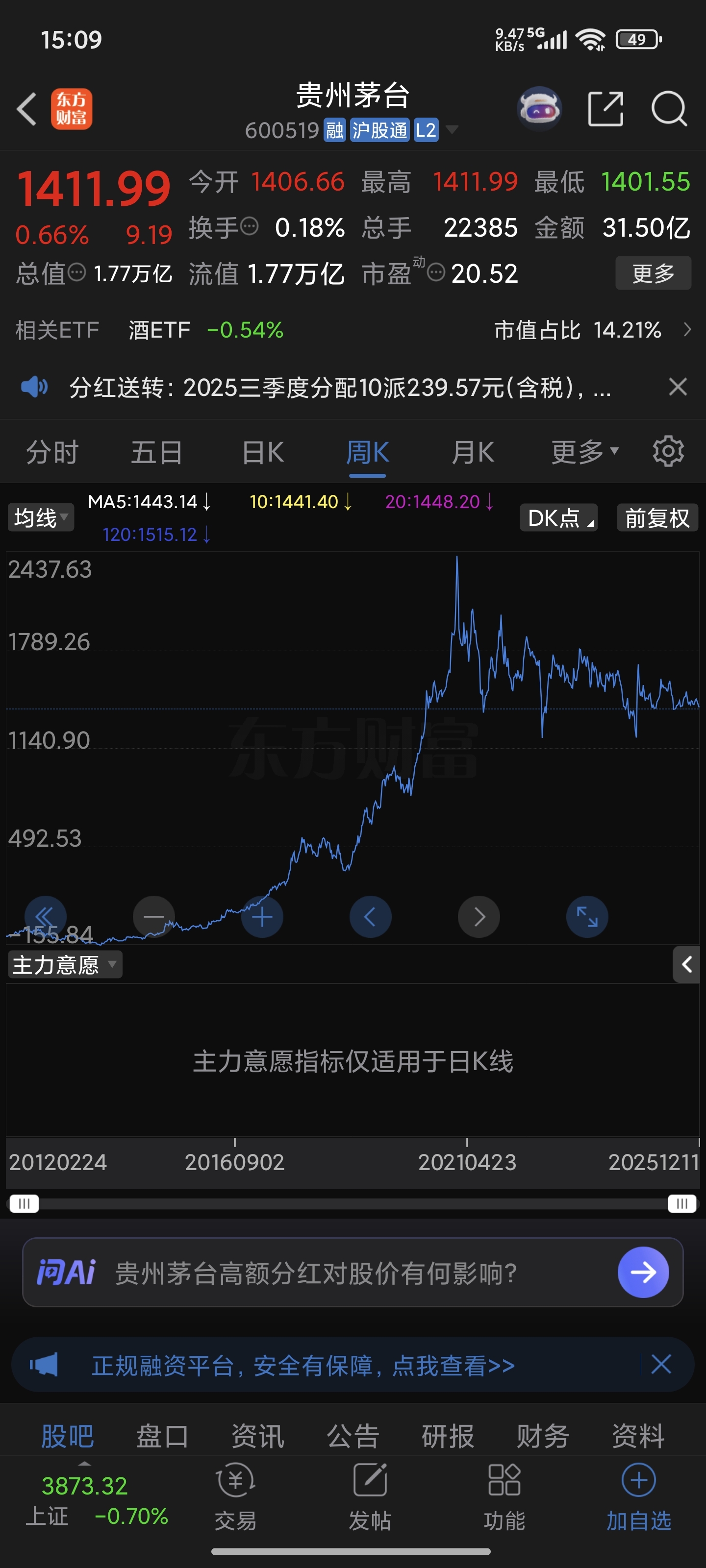 手里资金有限,又不知道买什么好,暂时不想追科技热点,又不想追热门题材。刚好茅台下