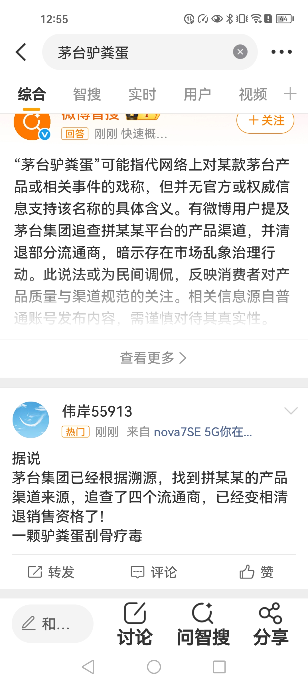 茅台集团已经根据溯源,找到拼某某的产品渠道来源,追查了四个流通商,已经变相清退销售资格了!