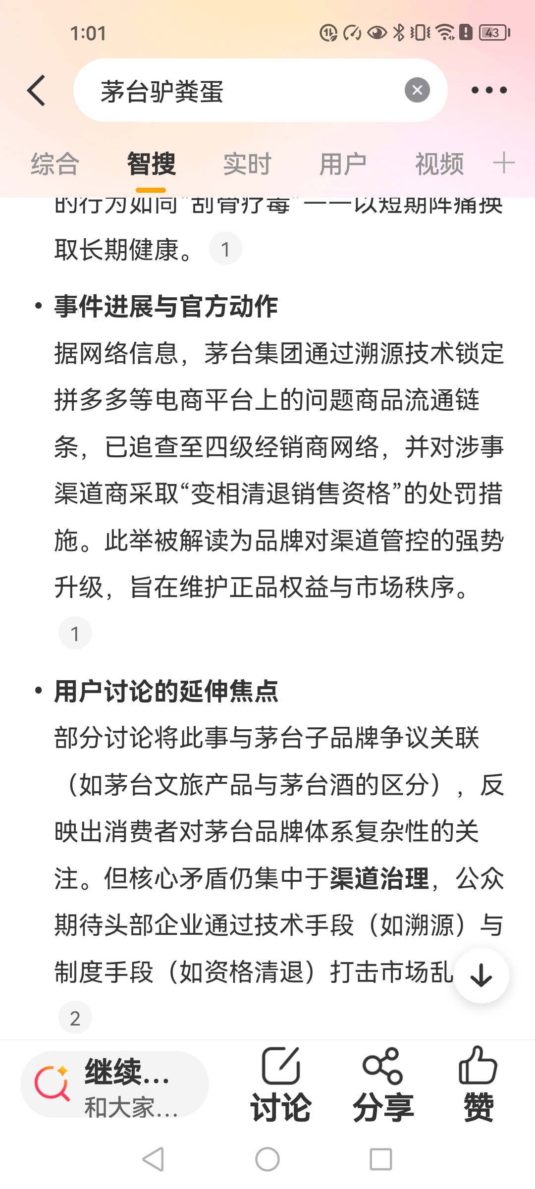 据说茅台集团已经根据溯源,找到拼某某的产品渠道来源,追查了四个流通商,已经变相清