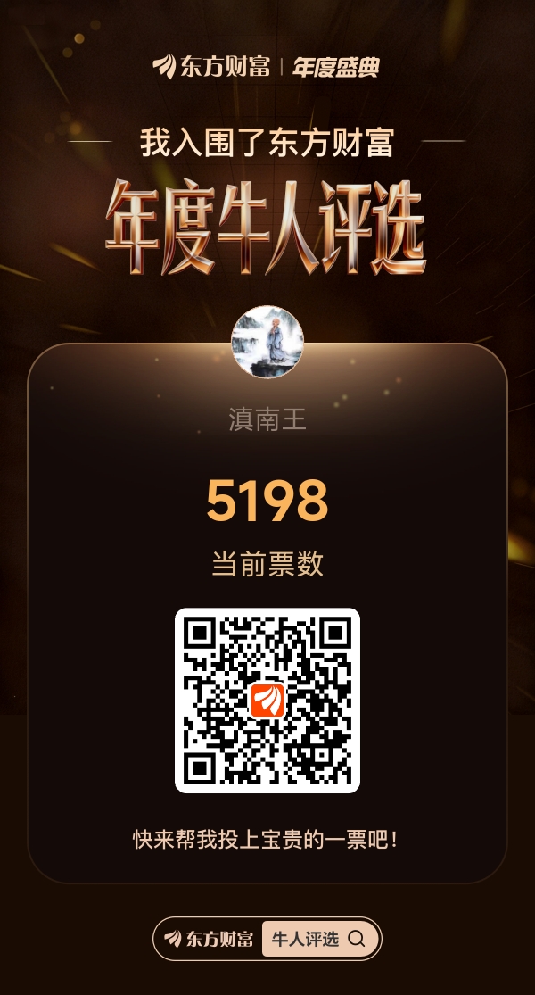 有幸入选东方财富年度牛人评选,大家可以搜“牛人评选”,找到滇南王后,用您发财的手