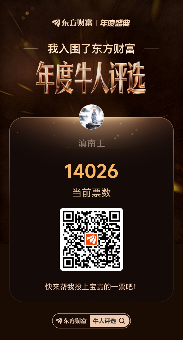 有幸入选东方财富年度牛人评选,大家可以搜“牛人评选”,找到滇南王后,用您发财的手指,投出您宝贵的一票!也可以直接扫下面二维码,直接进去投票页面给滇南王投票,感谢大家的支持!$贵州茅台(SH600519)$ $中国平安(SH601318)$ $腾讯控股(HK|00700)$