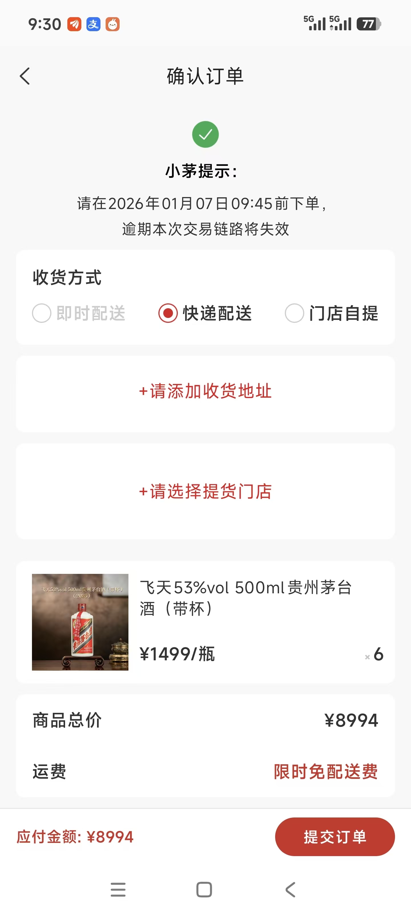 $贵州茅台(SH600519)$ 这是加量投放呢?还是要的人少了?昨天一点就抢到。今天也是一点又抢到。谁要啊?