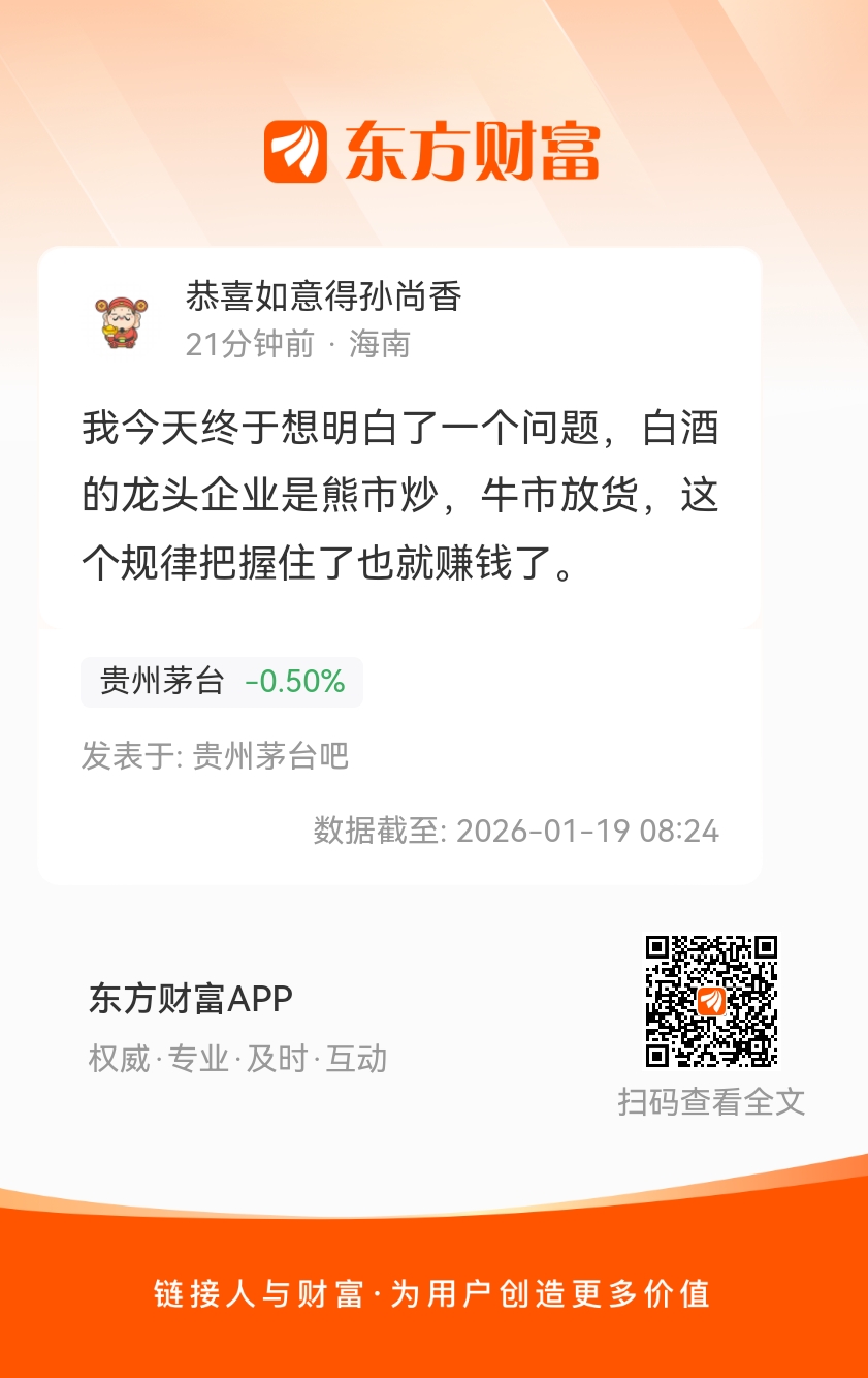 我今天终于想明白了一个问题,白酒的龙头企业是熊市炒,牛市放货,这个规律把握住了也就赚钱了。