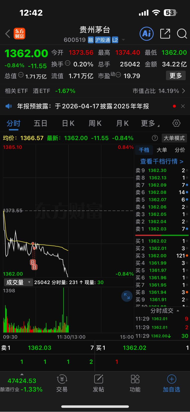 $贵州茅台(SH600519)$ 今天减了兆易,海光这些小登,再补2手老登鼻祖。继续定投,就当留着吃股息了。