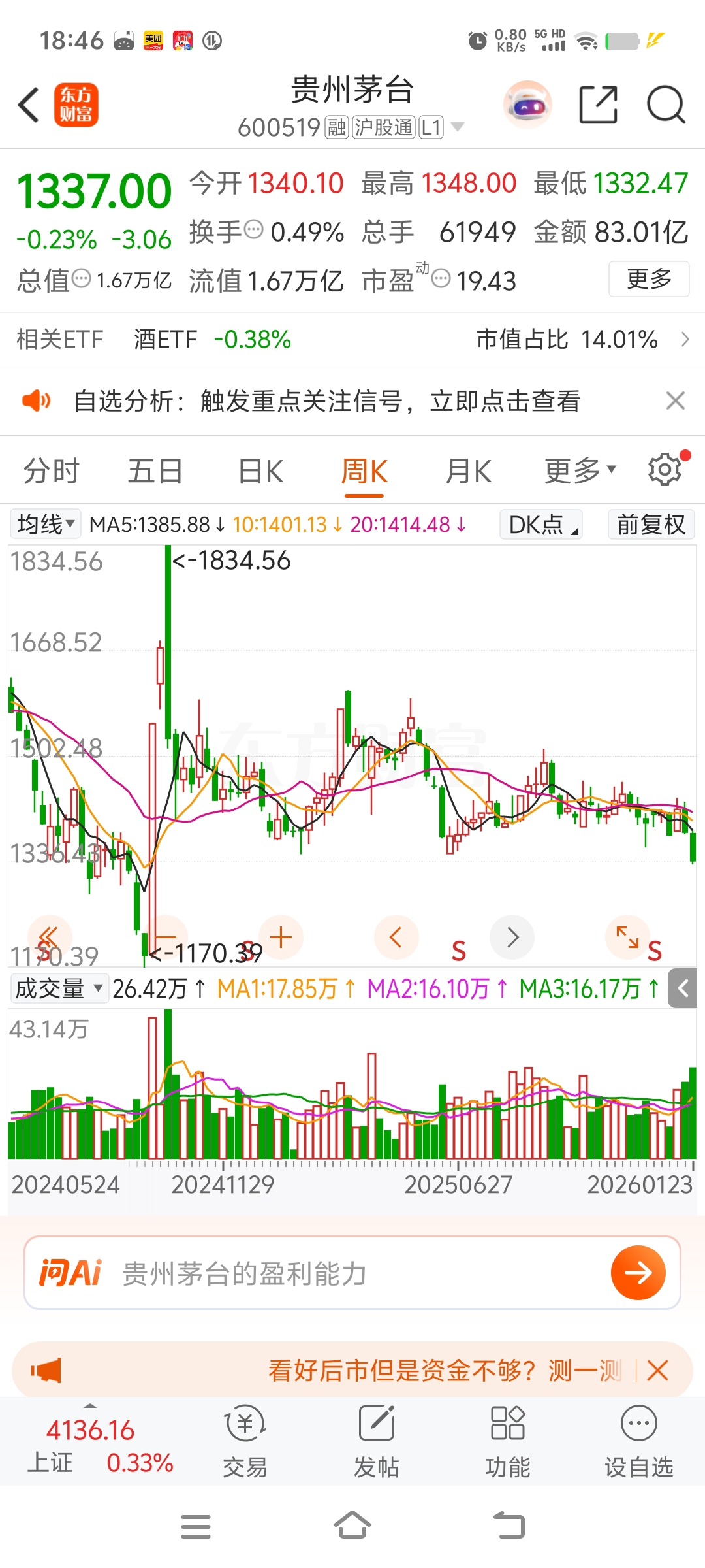 $贵州茅台(SH600519)$ 这张图最高点1834.56,翻译成闽南语:一把扇死你们,我溜了。那些大侠被挂在1834.56元的报个道,接近的也行。
