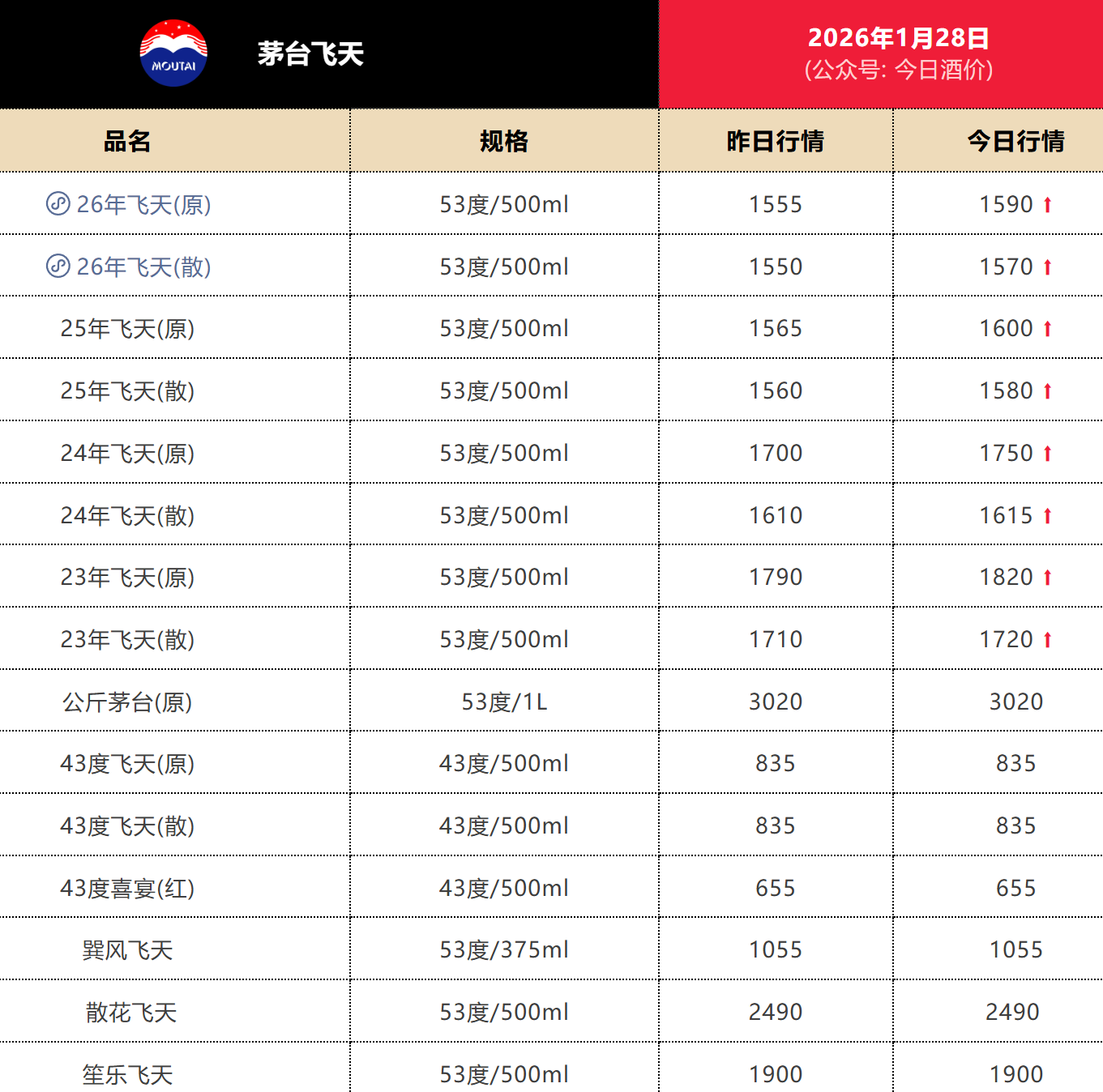 25年飞天茅台批发价格涨至1600元/瓶