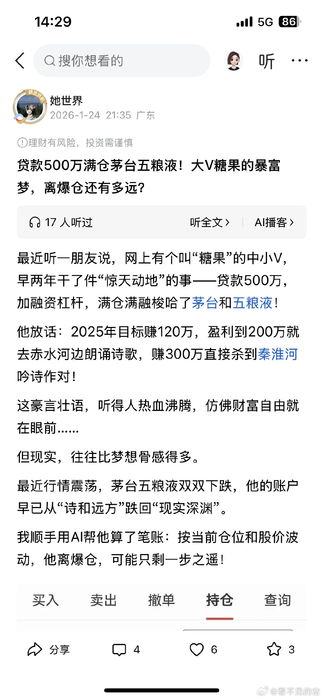 郑重声明:用户在财富号/股吧/博客等社区发表的所有信息(包括但不限于文字、视频、音频、数据及图表)仅代表个人观点,与本网站立场无关,不对您构成任何投资建议,据此操作风险自担。请勿相信代客理财、免费荐股和炒股培训等宣传内容,远离非法证券活动。请勿添加发言用户的手机号码、公众号、微博、微信及QQ等信息,谨防上当受骗!