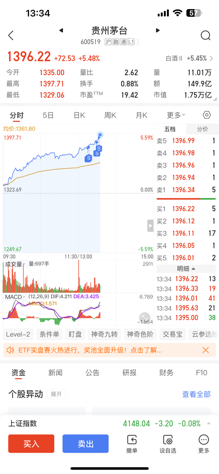 $贵州茅台(SH600519)$ 赚钱走了,感谢您猪力